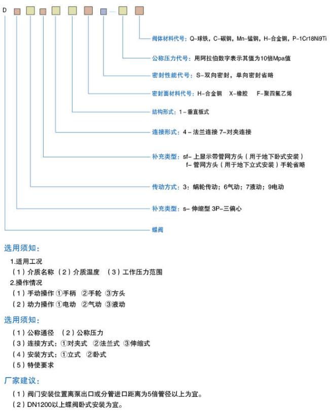 蝶閥型號編制方法: