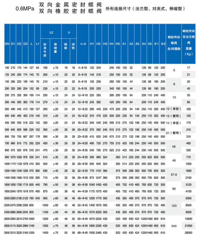 我公司生產(chǎn)的雙向金屬密封蝶閥嚴格按照JB/T8527標準設(shè)計和制造,法蘭連接符合GB/17241.6標準,結(jié)構(gòu)長度符合GB/T12221標準,閥門的檢驗和試驗嚴格執(zhí)行GB/T13927標準。該產(chǎn)品可實現(xiàn)真正的雙向密封,特別適用于城市管網(wǎng)系統(tǒng)作截斷或調(diào)節(jié)介質(zhì)流量。伸縮型雙向密封蝶閥是將法蘭型雙向密封蝶閥和管道伸縮節(jié)兩種產(chǎn)品功能融為一體;改進后的伸縮型雙向密封蝶閥可有效的消除管道安裝應(yīng)力,同時也便于閥門的安裝和拆卸。