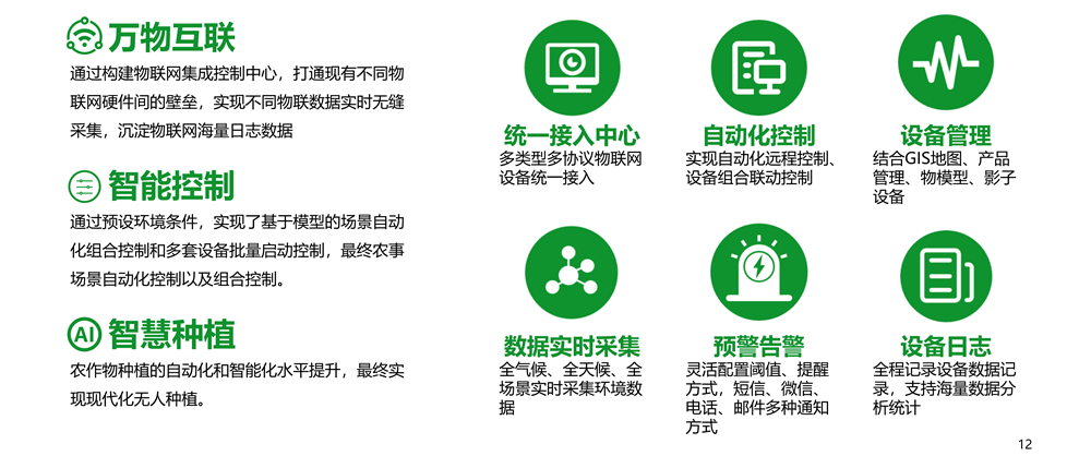 以5G、物聯(lián)網(wǎng)、人工智能等信息技術(shù)為基礎(chǔ),打造“云”、“網(wǎng)”、“端”、“應(yīng)用”結(jié)合的種植解決方案,面向茶葉種植、茶葉采收等場(chǎng)景,提供農(nóng)事智慧決策、設(shè)備智能控制,實(shí)現(xiàn)作物生產(chǎn)過程的精準(zhǔn)化、智能化,助力茶園降本增效。