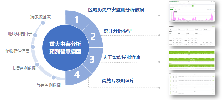 結(jié)合區(qū)域歷年積累的有關(guān)氣象、蟲情和作物農(nóng)情等資料及實時的氣候、 地塊溫度和濕度,通過模型預(yù)測未來害蟲的發(fā)生情況,并給出預(yù)防方法,為提前預(yù)防提供科學(xué)依據(jù)。