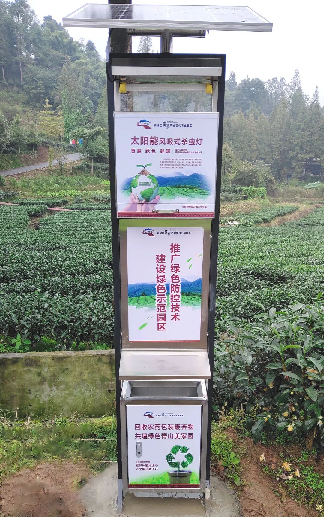 其中風(fēng)吸式殺蟲利用害蟲的趨光性、趨波性、趨色性及晝伏夜出的生活習(xí)性,以特定的光源和波長,吸引害蟲,再通過風(fēng)機(jī)誘捕,降低蟲害發(fā)生率,殺蟲無毒、無副作用,同時利用太陽能發(fā)電,達(dá)到節(jié)能環(huán)保的效果。