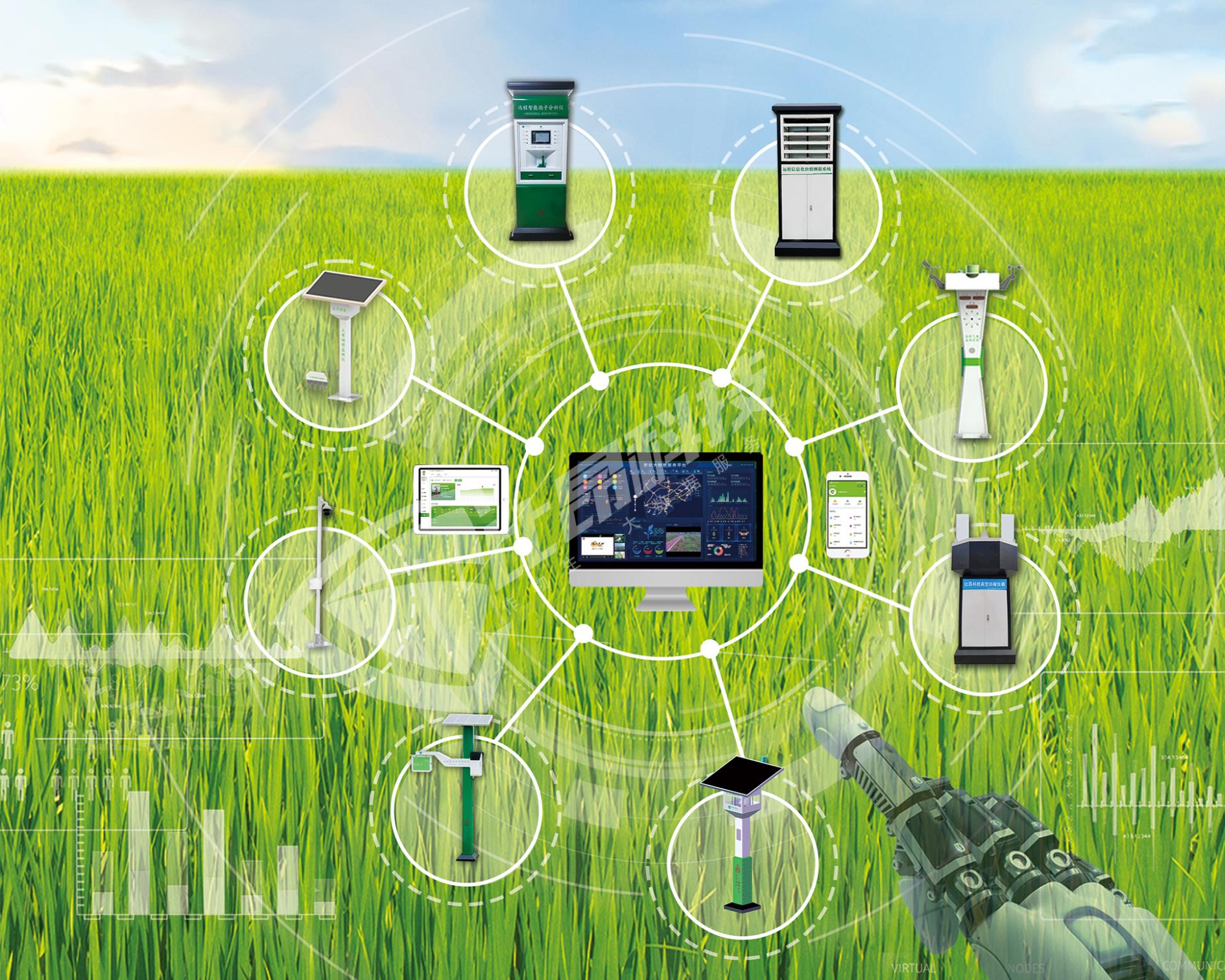 通過田間的氣象站、土壤墑情監(jiān)測儀、蟲情測報(bào)燈、遠(yuǎn)程苗情監(jiān)控、孢子病菌捕捉儀、灌溉水質(zhì)監(jiān)測站、農(nóng)田水位傳感器等物聯(lián)網(wǎng)設(shè)備監(jiān)測大田環(huán)境的溫度、風(fēng)向、土壤墑情、稻田長勢、病蟲害等各類指標(biāo),并實(shí)時(shí)反饋到水稻精準(zhǔn)種植平臺上,以大數(shù)據(jù)、人工智能算法模型分析,精確指導(dǎo)農(nóng)事生產(chǎn)計(jì)劃,助力水稻種植降本增效。