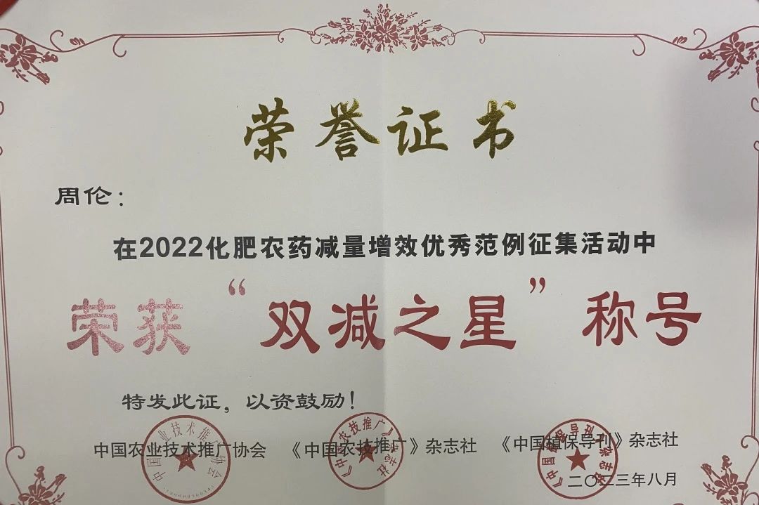 比昂科技以“農(nóng)業(yè)實(shí)現(xiàn)智慧管理、農(nóng)產(chǎn)品沒有農(nóng)殘威脅”為使命,在2022年化肥農(nóng)藥減量增效優(yōu)秀范例征集活動(dòng)中榮獲全國“農(nóng)服典范”稱號(hào),比昂科技董事長周倫榮獲“雙減之星”榮譽(yù)稱號(hào)。