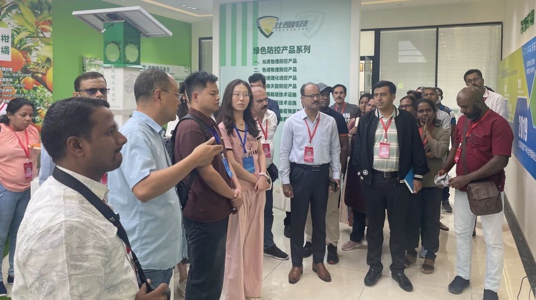 為了研修班成員更深一步了解比昂科技產(chǎn)品,比昂科技張金鋒博士引領(lǐng)大家參觀了綠色防控及智慧農(nóng)業(yè)產(chǎn)品展示區(qū),詳細(xì)講解了比昂科技自主研發(fā)生產(chǎn)的太陽能殺蟲燈等綠色防控產(chǎn)品、遠(yuǎn)程信息化蟲情監(jiān)測(cè)儀等智慧農(nóng)業(yè)監(jiān)測(cè)設(shè)備。