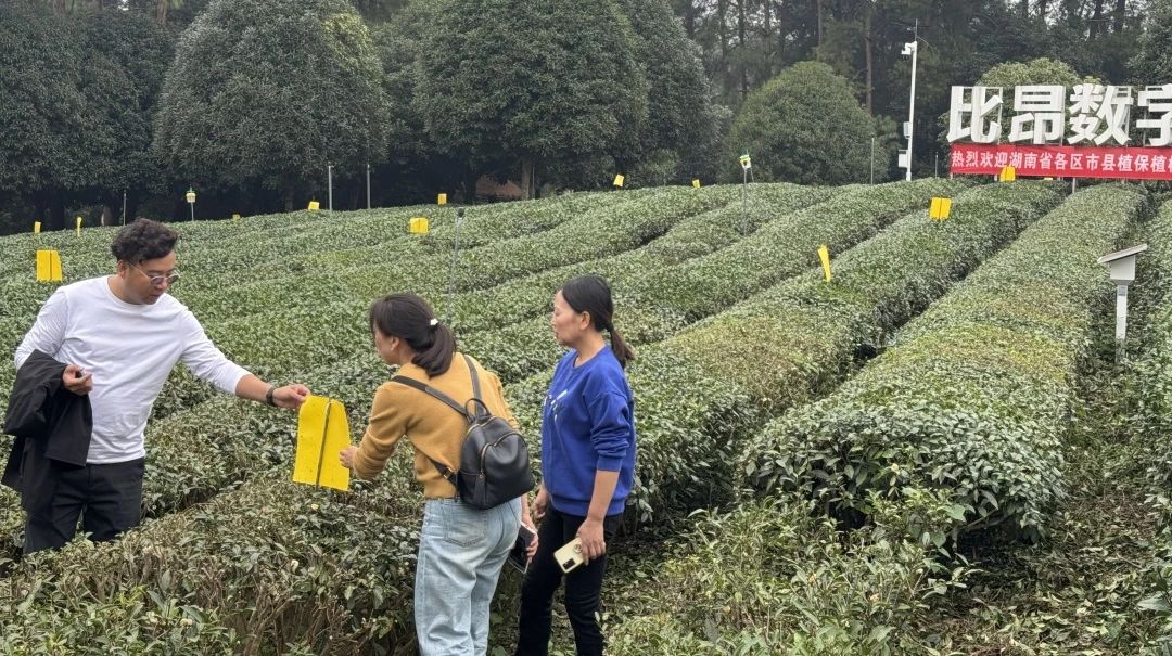 2024年10月24日,湖南省植保植檢站一行來(lái)到比昂數(shù)字茶園,考察交流茶葉重大病蟲綠色防控技術(shù)。成都比昂科技有限公司副總經(jīng)理姜雷、公共事業(yè)部總監(jiān)周瑆接待考察團(tuán)一行。