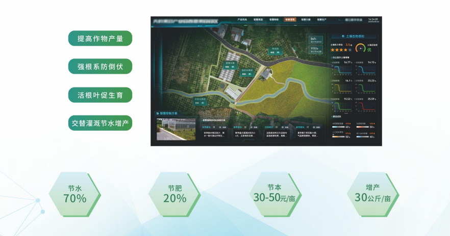 利用智慧水肥一體化灌溉系統(tǒng),提升灌溉效率25%;降低人工成本30%。