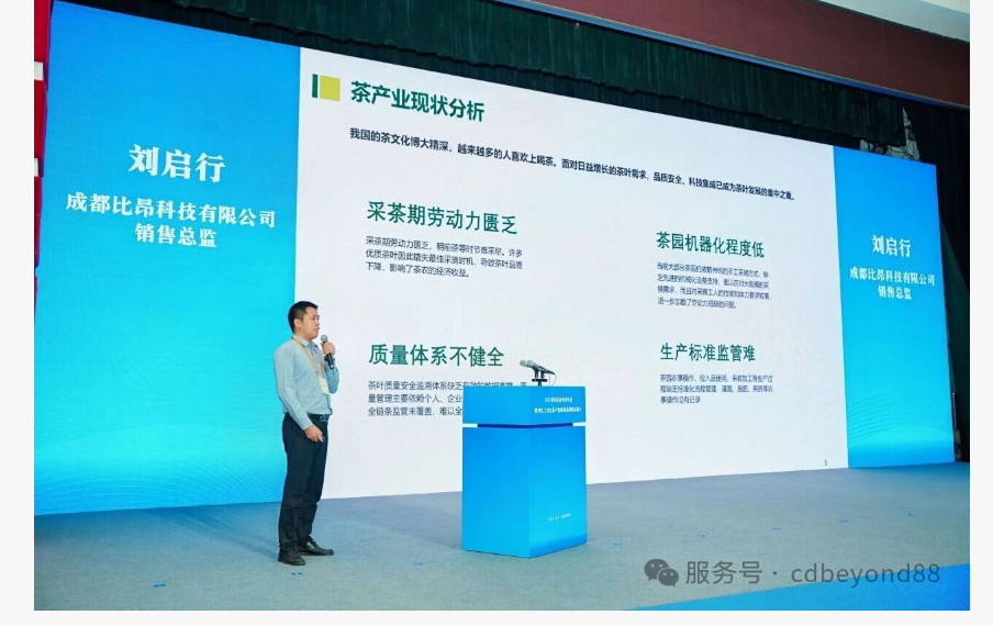 在2025四川茶業(yè)科技年會暨川紅工夫紅茶產(chǎn)業(yè)集群交流會上,成都比昂科技有限公司營銷總監(jiān)劉啟行受邀發(fā)表主題演講,全面分享了數(shù)字茶園解決方,為川紅工夫紅茶的智能化、標(biāo)準(zhǔn)化與品牌化發(fā)展提供了前沿思路與成功實(shí)踐,獲得了與會者的高度關(guān)注與認(rèn)可。