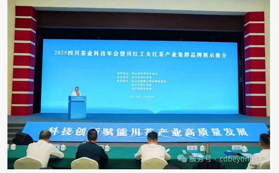 10月17日,以“科技創(chuàng)新賦能川茶產(chǎn)業(yè)高質(zhì)量發(fā)展”為主題的2025四川茶業(yè)科技年會暨川紅工夫紅茶產(chǎn)業(yè)集群品牌展示推介活動(dòng)拉開帷幕。來自四川省科協(xié)、各市(州)茶葉學(xué)(協(xié))會、涉茶科研院所、茶葉主產(chǎn)市縣農(nóng)業(yè)農(nóng)村部門、川紅工夫紅茶產(chǎn)業(yè)集群縣及行業(yè)企業(yè)的近200名代表齊聚“中國紫茶之鄉(xiāng)”沐川縣,共同擘畫川茶產(chǎn)業(yè)高質(zhì)量發(fā)展新藍(lán)圖。
