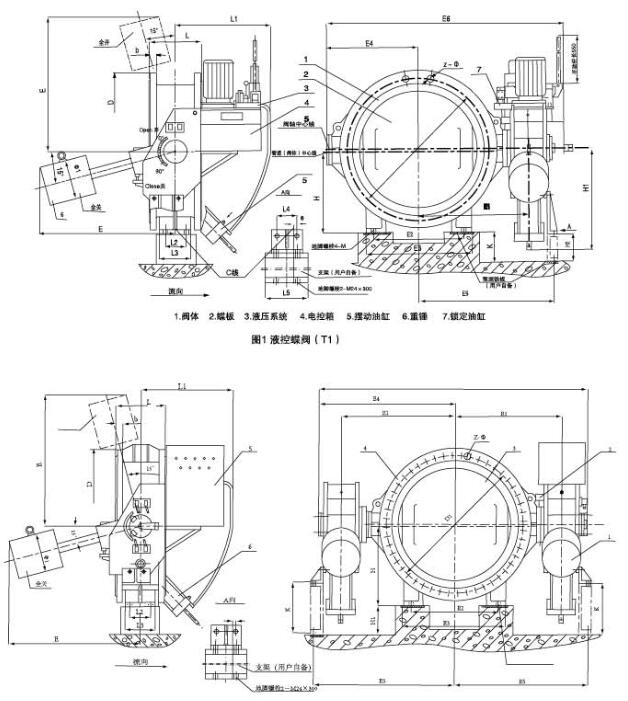 水電站型自動(dòng)保壓液控蝶閥外型及安裝尺寸圖